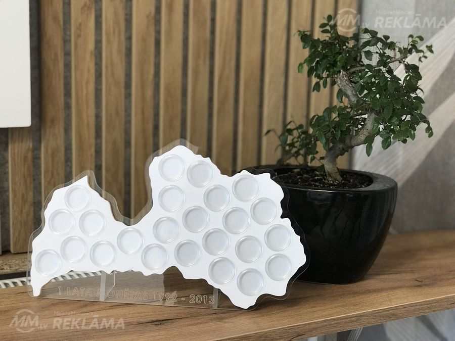 1 Lata monētu turētāji. Ļoti labi iederēsies katrā interjerā. Katra monēta ievietojas aizsargājamā kapsulā (kapsulas nāk komplektā!), kas nozīmē, ka monētas vienmēr saglabās savu izskatu un vērtību.