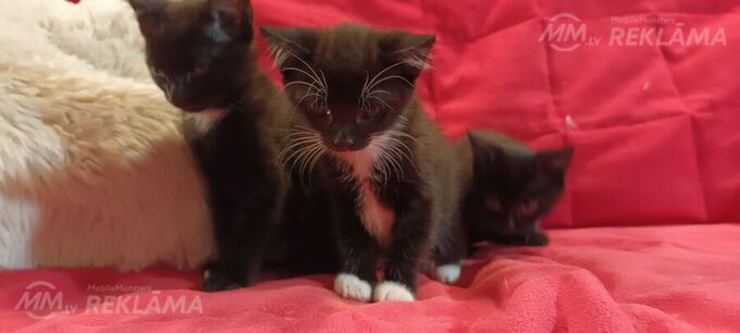 Trīs brīnišķīgi kaķēni melni ar baltumiem, katrs ar savu šarmu un personību meklē sirsnīgas mājas!