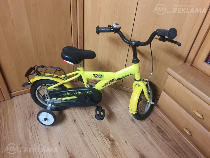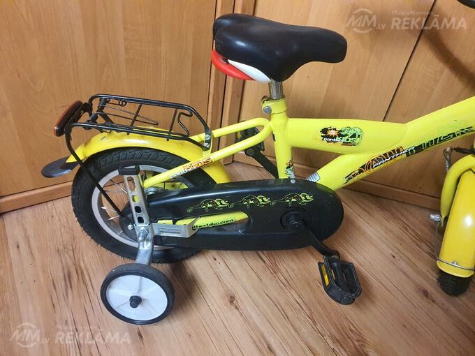 Pārdodu bērnu velosipēdu 12 collas riepām, bērniem no kādiem 2-6 gadiem ar palīgriteņiem, kamēr bērns iemācās braukt. Jā nevajag, varu noņemt. Velosipēds ļoti labā stāvoklī, kā jauns, viss strādā un nekustas gūltņos. Bremzes ar roku priekšā, ar kāju aizmugurē. Maz braukts, riepas pat nav nemaz dilušas. Atstarotājs, dubļusargi, ķēdes sargs, zvaniņš un bagāžnieks ar atsperi utt. Cena-42 EUR. Atrodas Ķengaragā pie Dienvidu tilta.