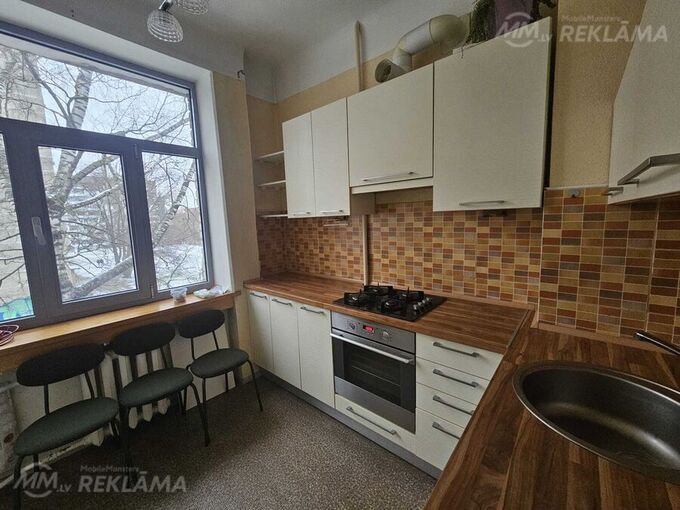 Iebūvēta virtuve ar visu nepieciešamo sadzīves tehniku.