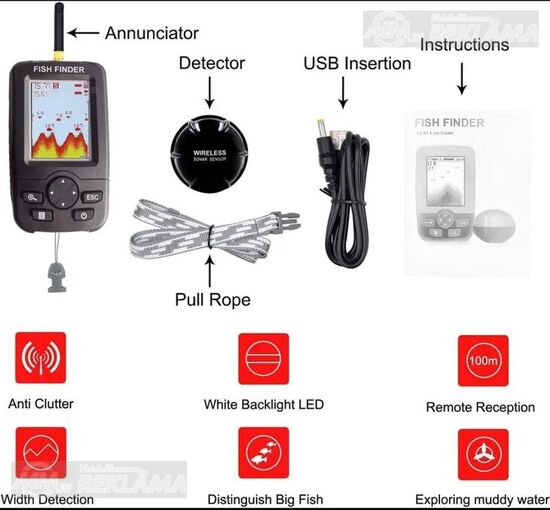 Беспроводной эхолот Fish Finder xj-01 - новинка среди эхолотов фирмы Fish Finder. В сочетании с используемыми современными и продвинутыми технологиями этот эхолот является одним из самых лучших среди аналогов. Об этом говорит и его популярность среди любителей рыбалки. Данный эхолот максимально прост, что делает его надежным и удобным в повседневной эксплуатации. Большой дисплей с несколькими цветами хорошо виден как днем, так и ночью. Крупные прорезиненные кнопки позволяют легко и интуитивно управлять всеми настройками, а съемные батареи популярного типового формата AAA позволяют наслаждаться рыбалкой практически круглосуточно, достаточно их просто заменить.