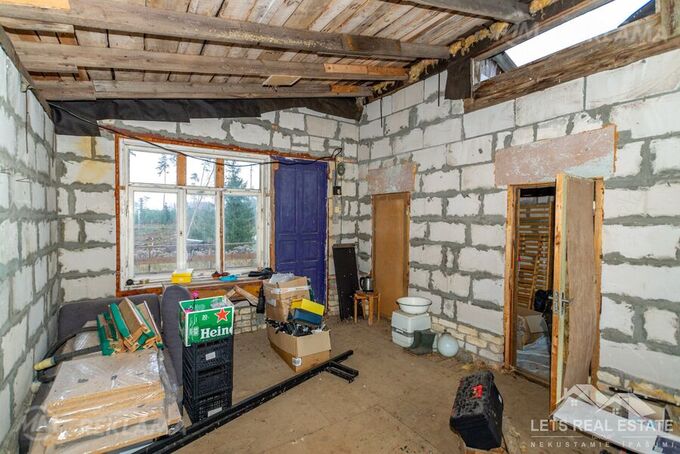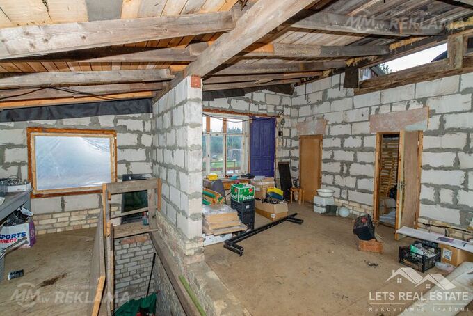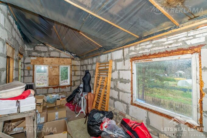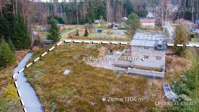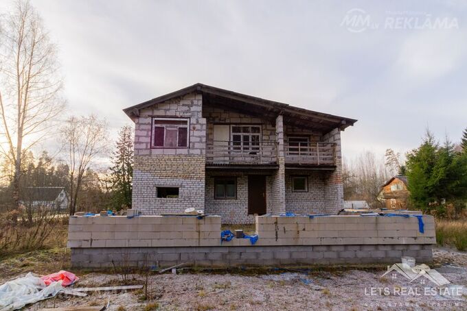 In one of the most favorite recreation areas of Riga citizens, the gardening and summer cottage area of Vaivadi, on the edge of the forest in the quiet of a small village, a large plot of land of 1306 m² and an unfinished two-story new building 107.8 m² are for sale. The property for sale consists of two plots of land listed in the land register and a new building. The land is leveled and meliorated. The new building is stone: brick and aerated concrete, 3-phase electricity is supplied. A regular bus runs in winter and summer. More information by phone or in person.