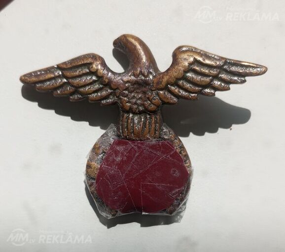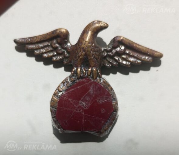 Нижняя часть обломана. Возможно это верхняя часть статуэтки или навершие на флагшток . Это политический орел раннего стиля, датируемый примерно концом 1920-х годов и примерно 1935 годом. Небольшие потертости от использования, в остальном хорошее состояние.