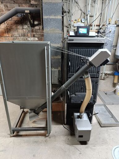 Pārdodu pilnu granulu/malku apkures sistēmu: Sime Solida EV 5 čuguna katls + Defro 25 kW granulu deglis + ūdens apvalks/paliktnis. Viss darba kārtībā, komplektā viss nepieciešamais. Pāreju uz gāzi, tāpēc lieka.