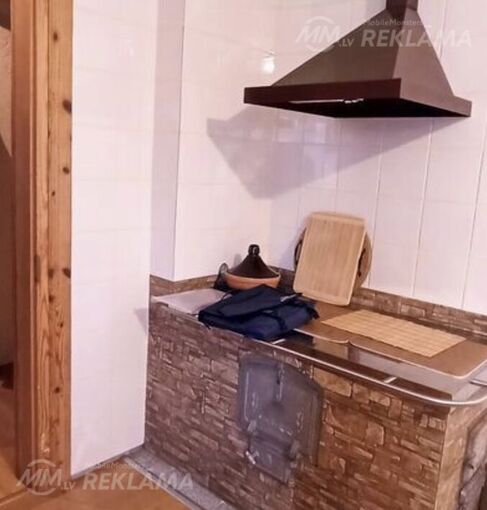 2) Funkcionāla virtuve gan ar gāzes, gan ar malkas plīti (vairāk kalpojusi kā interjera dizaina elements), ideāli piemērota mājīgu maltīšu gatavošanai.
