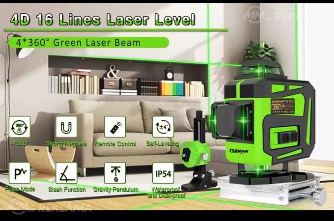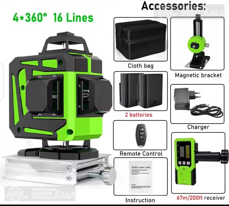 Lāzera nivelieris 4D 16 līnijas ar signāla uztvērēju