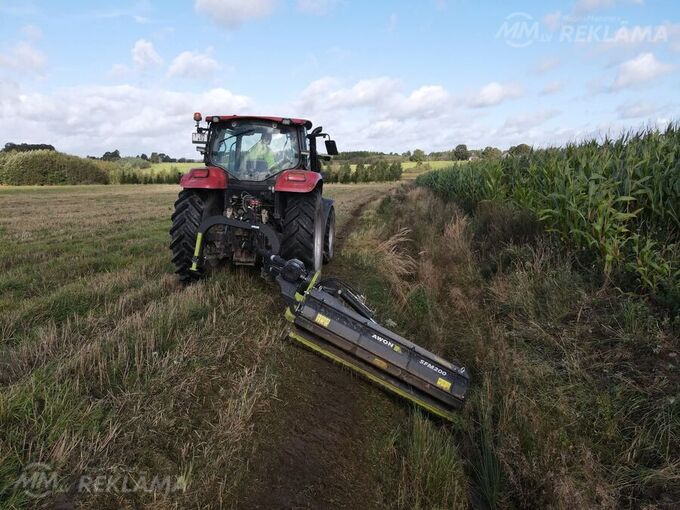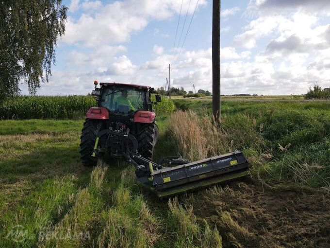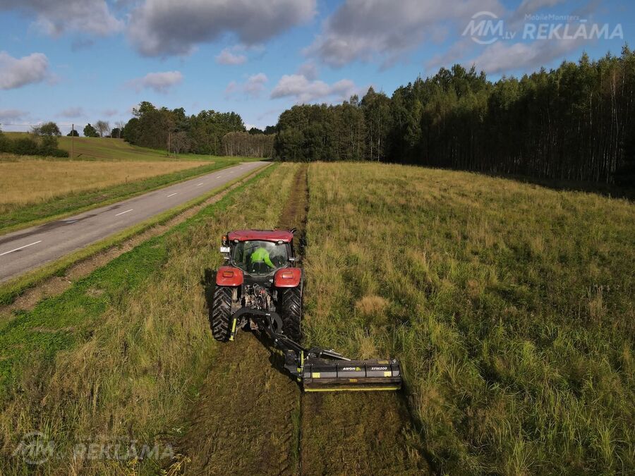 Hidrauliskais nobīdījums: ļauj strādāt gan tieši aiz traktora, gan nobīdīt sānis, piemēram, grāvju, ceļmalu vai koku rindām blakus esošo teritoriju apstrādei