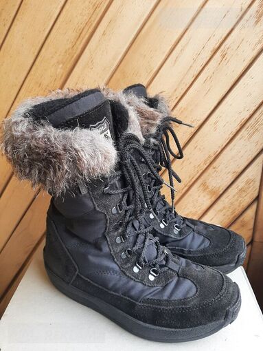 Сапожки фирмы Esprit, малоношеные, в идеальном состоянии. Материал замша, болонь, водонепроницаемые (технология Gartex). Внутри утеплитель в виде мягкой байки. Размер 36, размер по стельки 22.5 см.