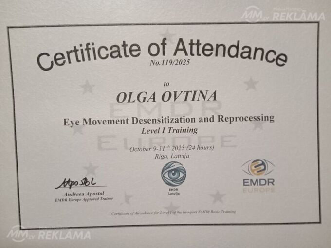 Стоимость EMDR-сессии 50 евро за 1, 5 часа, что является одной из самых выгодных цен в Латвии.