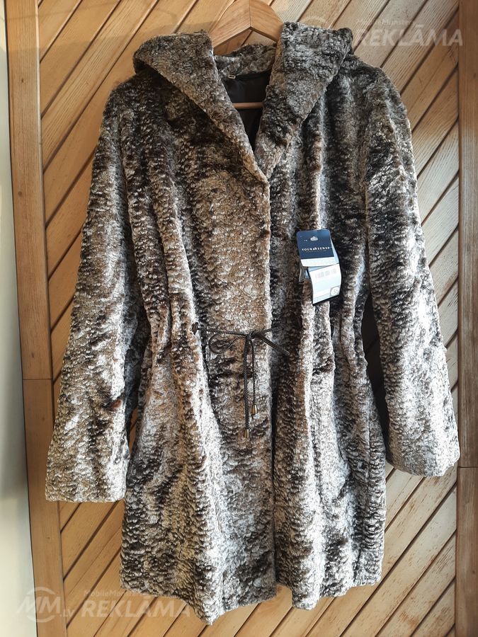Длинный полушубок из каракуля с капюшоном. Ткань очень нежная, мягкая, переливается очень красиво на солнце. Внутри на талии есть шнуровка. Длина 82 см, ширина 56 см, длина рукава 61 см. Размер 36/38. - 180 евро.