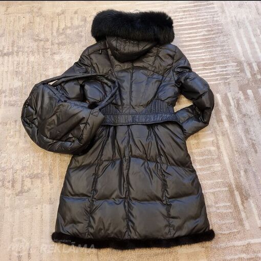 Пуховое пальто в комплекте сумочка Размер - М Длина до колена Мех - чернобурка, сьёмный В отличном состоянии Недорого