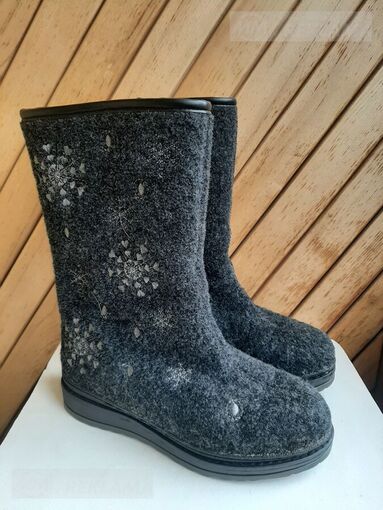 Продаю новые валенки фирмы Тофа из войлока с вышивкой, внутри светлый, тёплый мех, сбоку молния. Размер 36, размер по стельки 22 см. - 30 евро. Продаю новые леопардовые резиновые сапоги, производство Италия. - 30 евро.