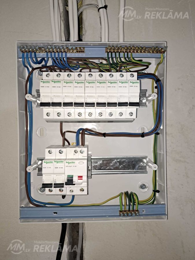 Замена в электрощитке устаревших пробок на современные автоматы.